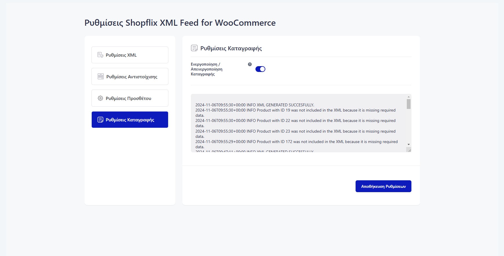 • Διαλέξτε την συχνότηατ δημιουργίας του XML αρχείου.