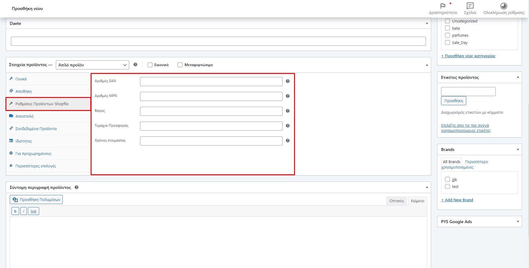 • Δυνατότητα αυτόματων προεπιλεμένων ρυθμίσεων για προϊόντα που δεν έχουν τα απαραίτητα πεδία όπως EAN , Χρόνος προετοιμασίας παραγγελιάς και Βάρος