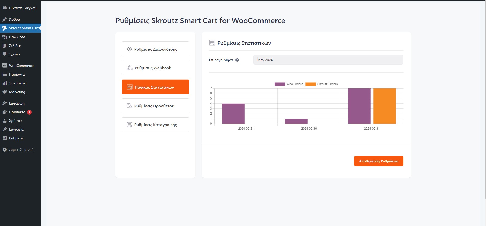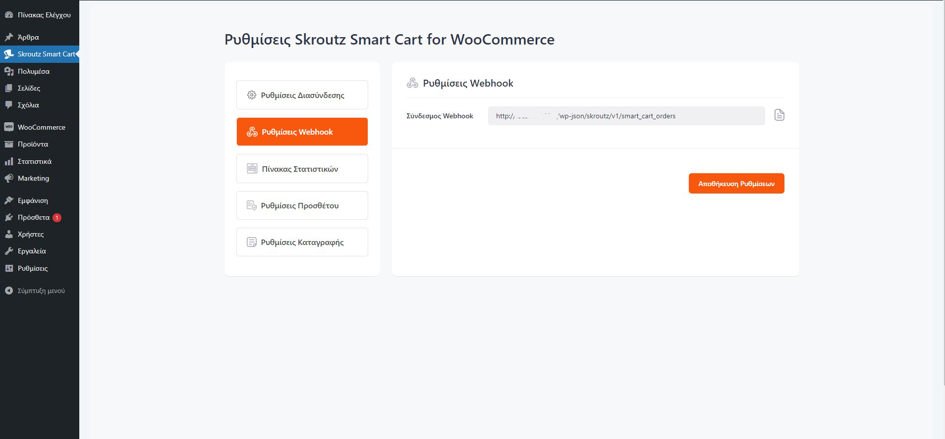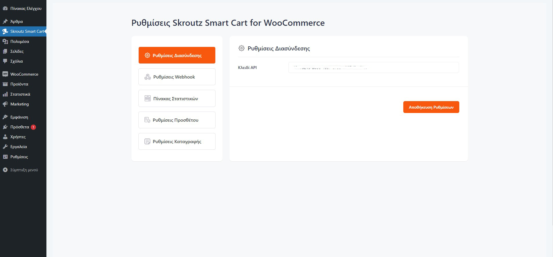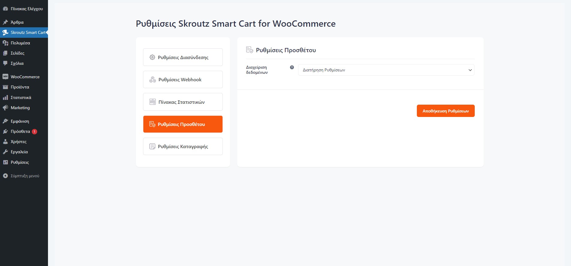 - Επισκεφθείτε τη σελίδα ρυθμίσεων του Skroutz Smart Cart από το μενού διαχείρισης.